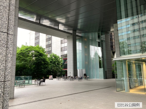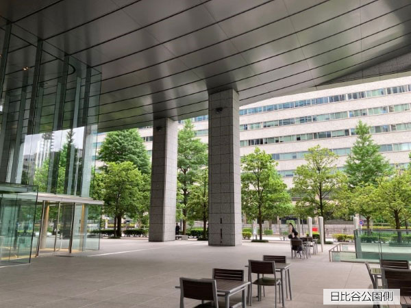 上部が屋根で覆われたピロティ空間となっており、緑豊かなイイノの森と隣接した「日比谷公園側」、祝田通りに面し視認性に優れた「虎ノ門側」と2つのスペースに分かれておりますので、イベント規模・内容に応じて、各スペース毎もしくは一体的にご利用いただくことが可能です。